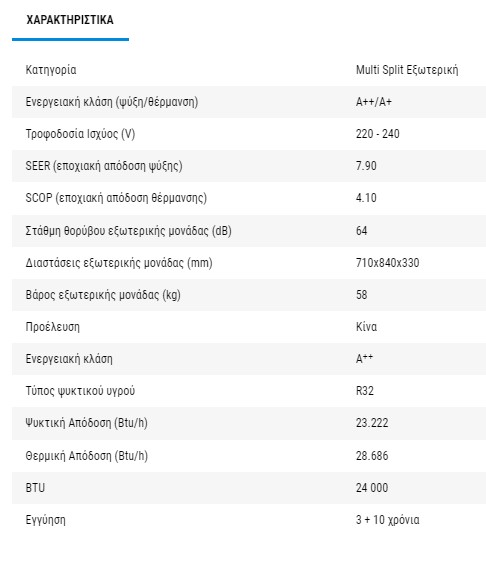- Εκτεταμένο μήκος σωληνώσεων, από 20m έως 80m