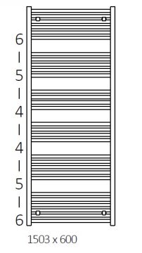 Υψηλής ποιότητας πετσετοκρεμάστρα νερού TERMA Basia , σε διάσταση 1503mm ύψος και 600mm πλάτος.