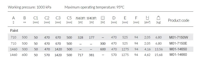 Υψηλής ποιότητας πετσετοκρεμάστρα νερού TERMA Μ01, σε διάσταση 1460mm ύψος και 500mm πλάτος.
