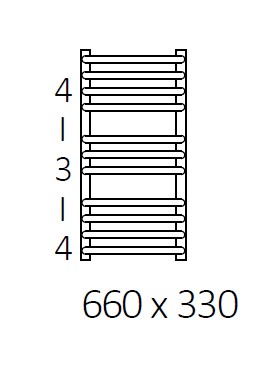 Υψηλής ποιότητας πετσετοκρεμάστρα νερού TERMA C01, σε διάσταση 66cm ύψος και 33cm πλάτος.