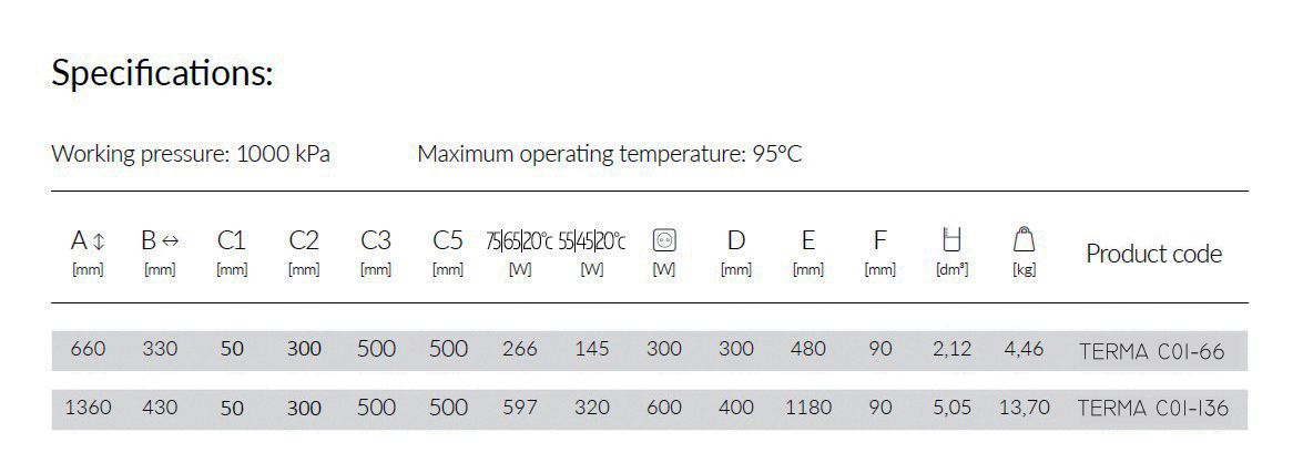 Πετσετοκρεμάστρα Terma C01 White Ρεύματος 600W 1360x430mm &nbs..