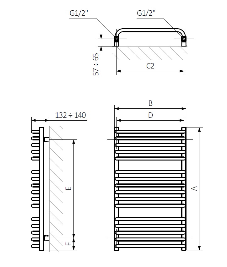 Υψηλής ποιότητας πετσετοκρεμάστρα νερού TERMA C01, σε διάσταση 1360mm ύψος και 430mm πλάτος.
